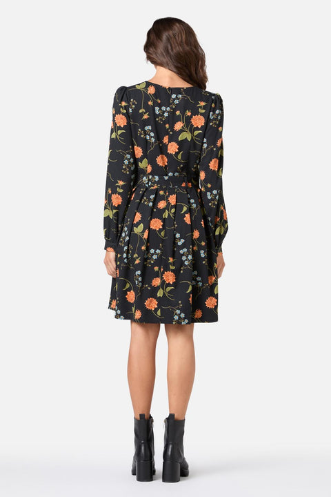 Tauchen Sie ein in den Glamour der 70er Jahre mit dem Esmerelda Floral Mini Dress von Princess Highway. Dieses schwarze, langärmelige Minikleid ist mit einem traumhaften, fließenden Blumenmuster verziert, das Romantik, Eleganz und einen Hauch von Retro-Charme versprüht. Das leicht taillierte Oberteil und der weich plissierte Rock zaubern eine schmeichelhafte Silhouette, während der abnehmbare Taillengürtel es Ihnen ermöglicht, die Taille zu betonen oder locker zu tragen.