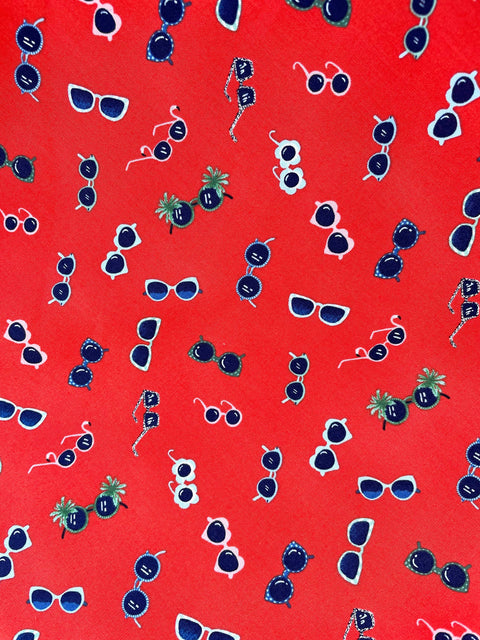 Ein Kleid im Vintage-Stil mit verspielten, modernen Details in unserem coolen Sonnenbrillen-Print. Dieses klassische Kleid im Stil der 1950er-Jahre ist aus 100 % Baumwolle gefertigt und besticht durch einen hohen Ausschnitt, einen längeren Rock mit versteckten Seitentaschen und einen Reißverschluss hinten. Hoher Ausschnitt, weiter Rock, Taschen, Reißverschluss hinten, 100 % Baumwolle, hergestellt in den USA. Model: Größe M, 1,73 m. Passform: Fällt größengerecht aus. Größentabelle: Alle Maße in Zoll. Ungefähre Angaben