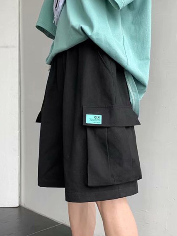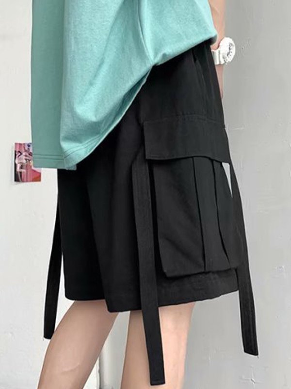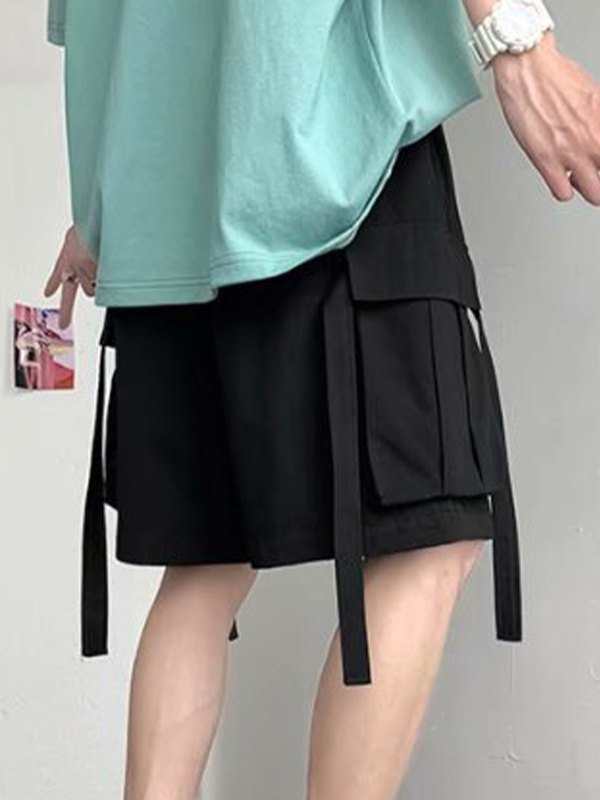 Description: Shaped with an elasticated drawcord waistStyle, features cargo leg pockets with extended straps on it, and has a label paneled design.