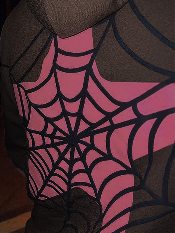 Unique Design: The hoodie features a unique contrast color and spider web print, making it a standout piece in any wardrobe. This design gives it a cool, street vibe that is sure to turn heads.