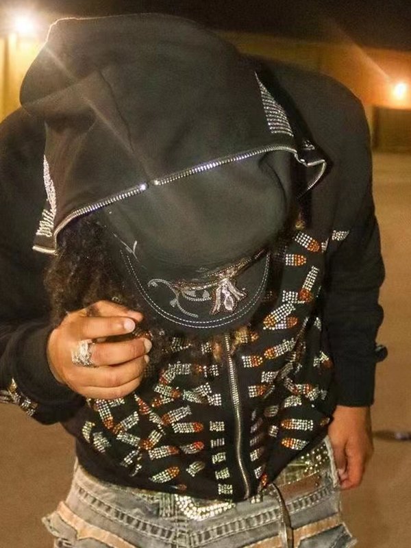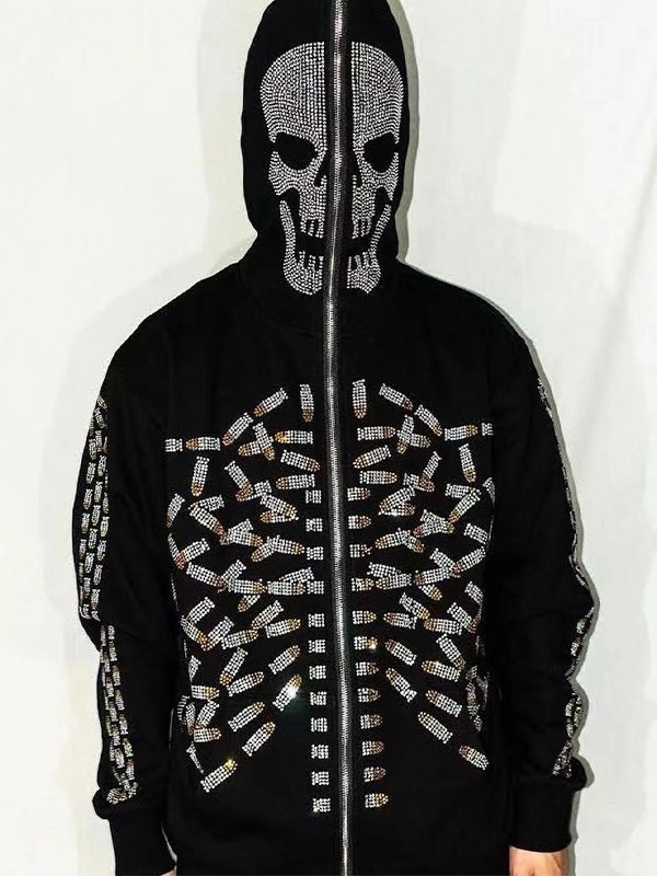 Be the first to review “Men’s Rhinestone Skull Zip Up Hoodie”