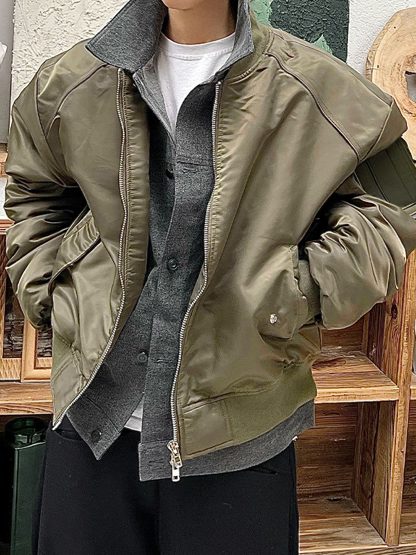 Men’s Vintage Fake Two Piece Splice Bomber Jacket