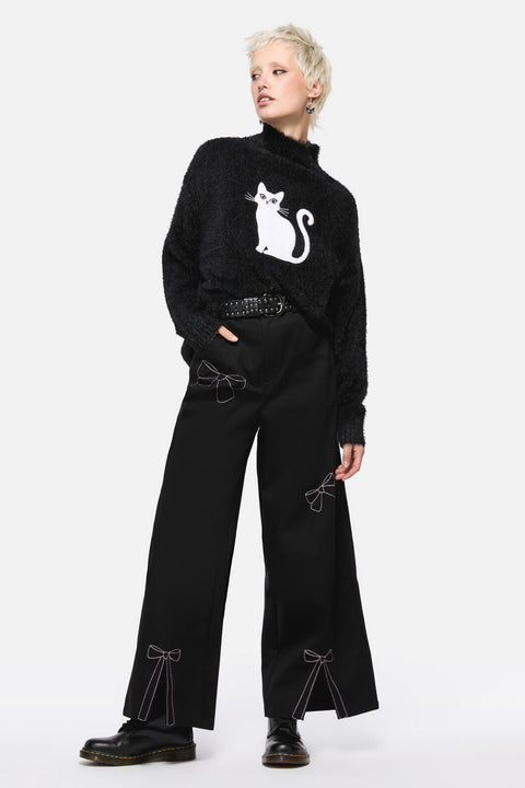 Zůstaňte roztomilí a útulní s kýčovitým nádechem v pleteném svetru Catkins Boucle od Dangerfield. Tento měkký a nadýchaný úplet je vyroben pro milovníky koček s citem pro retro styl. Má volný střih, rolák a buklé motiv kočky na přední straně. Ať už lenošíte nebo vrstvíte oblečení, je to perfektní svetr pro chladné dny a nevšední šatník.