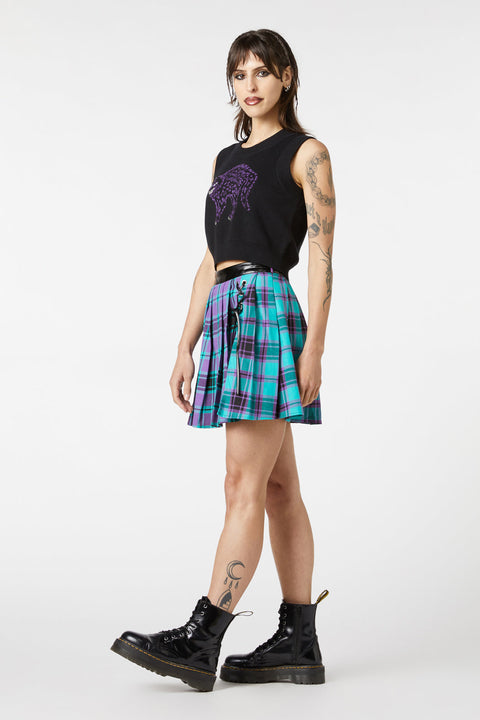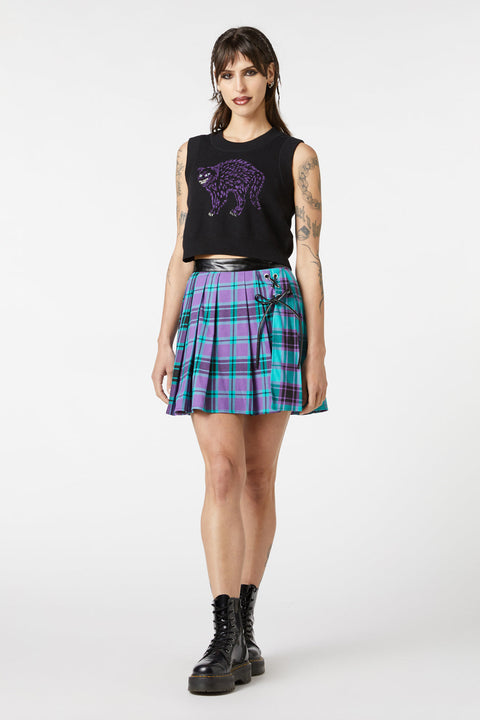 Vkročte do stínů s rozpustilým nádechem v svetru s usmívající se kočkou od Dangerfield. Tento goticky inspirovaný úplet bez rukávů je vyroben z měkké 100% bavlny a nabízí pohodlí i osobitý styl. Kulatý výstřih a zkrácená délka vytvářejí lichotivou siluetu, zatímco výrazný design usmívající se kočky na přední straně dodává nádech tajemného kouzla.