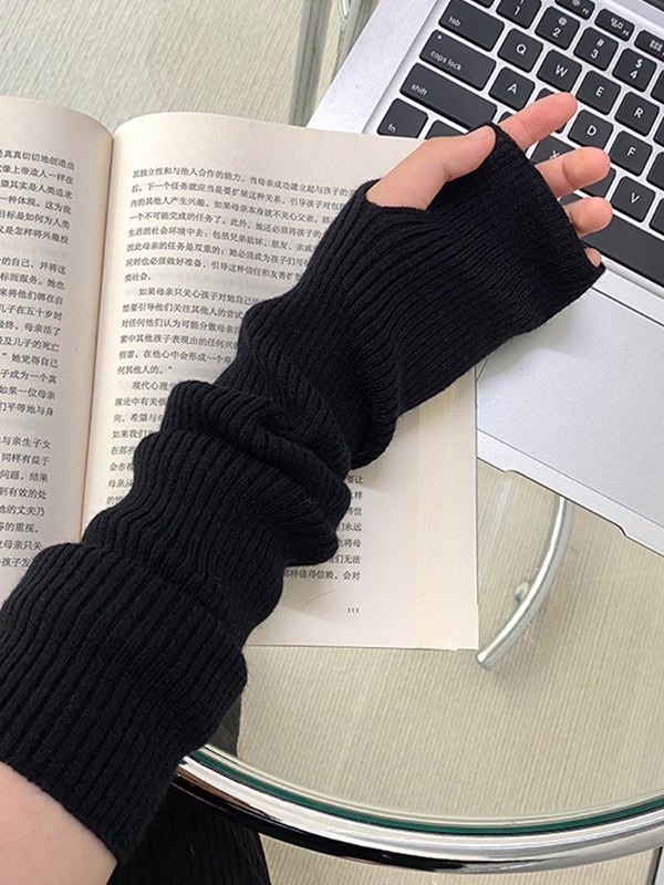 Ribbed Knit Thumbhole Arm Warmer Gloves