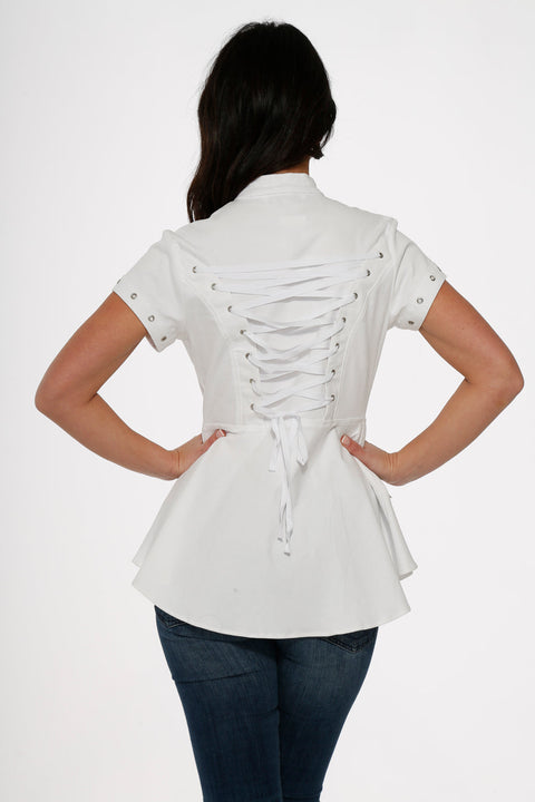 Bílý top s vysokým páskem od Orchid Bloom