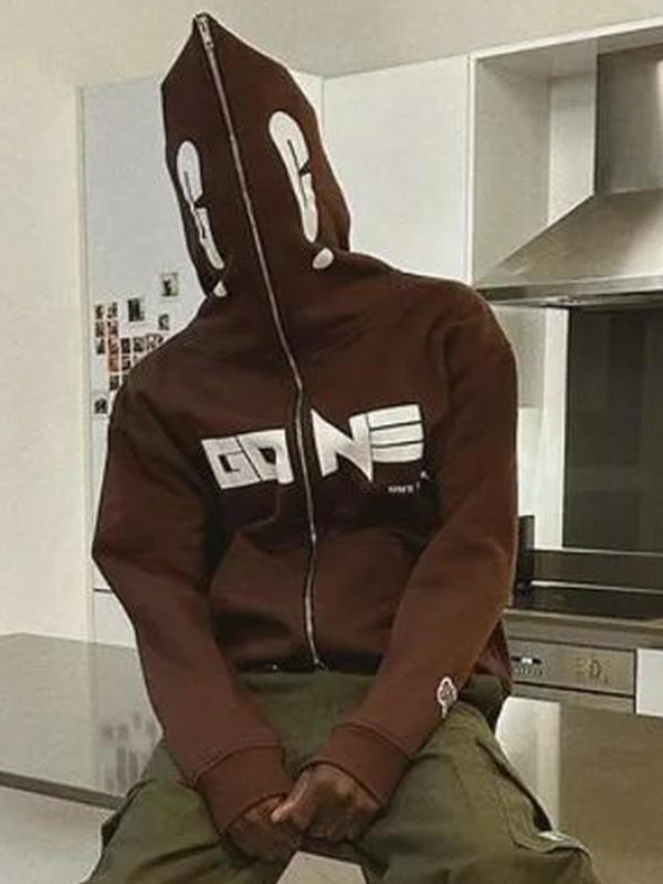Men’s Sleeve Star Print Zip Up Oversized Hoodie