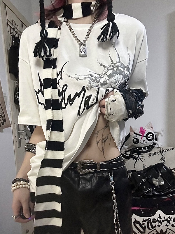 Cross Letter Printed Bubble Sleeve Short Sleeve Tee